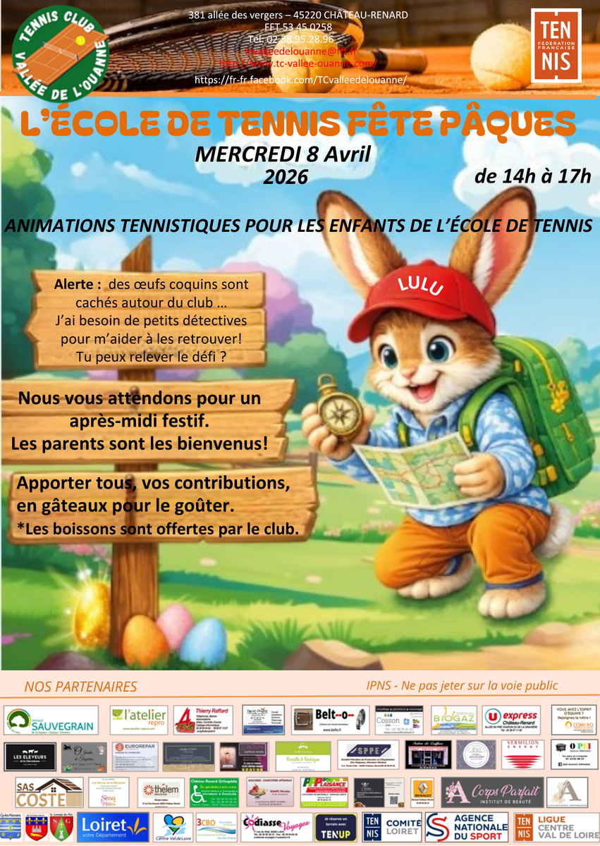 Fête de Pâques pour les enfants de l'école de tennis aura lieu le 8 avril 2026