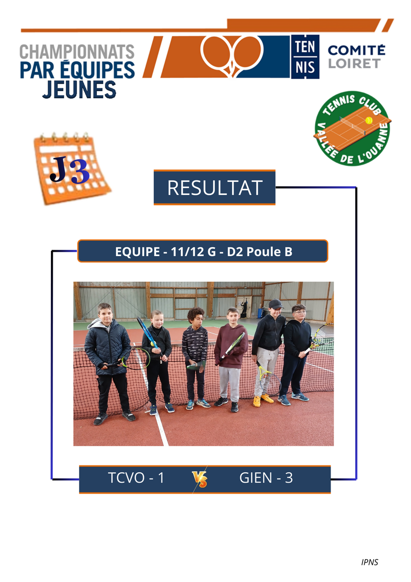 Résultat 3ème journée 11/12 ans - Nos jeunes sont en progression, Bravo à eux ! 👍👏
