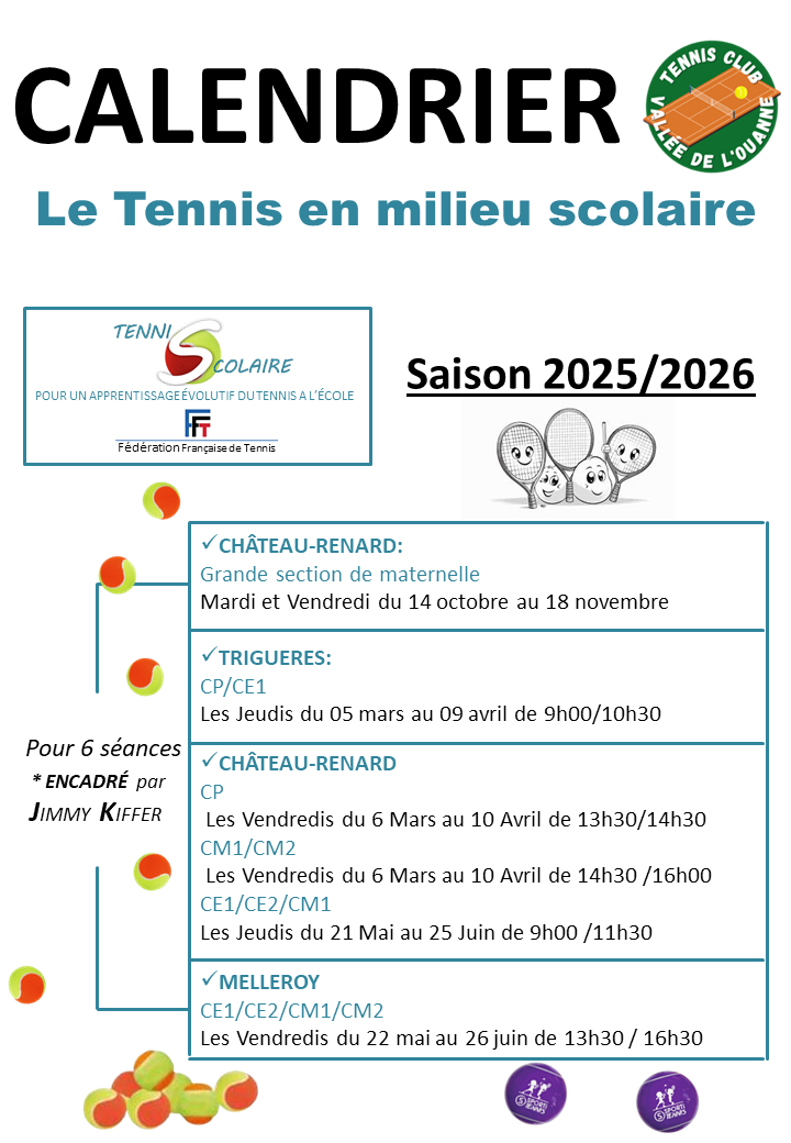 Le Tennis à l'école 2025/2026 - Planning des interventions