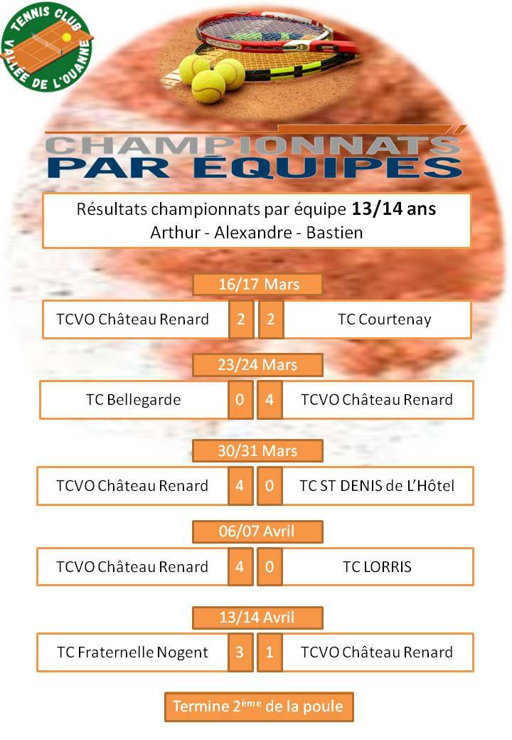 Résultats complets du championnat 13/14 ans - BRAVO !!!