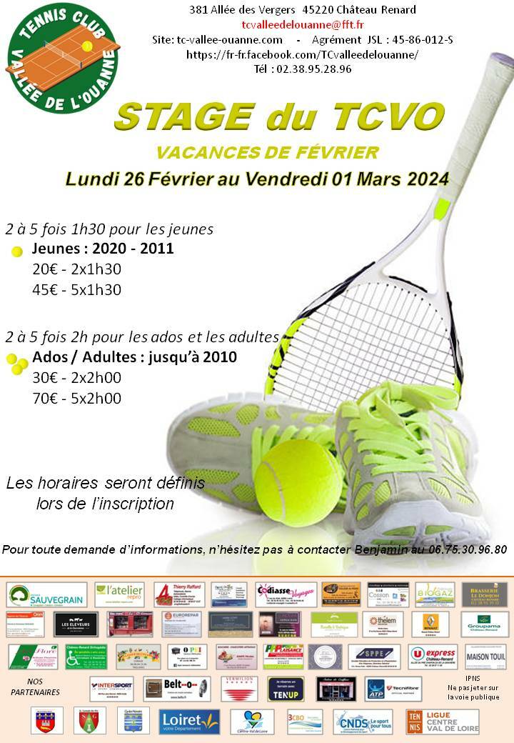 STAGE DE TENNIS du lundi 26 février au vendredi 1er mars