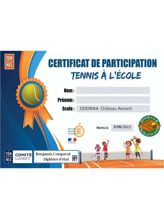 La semaine prochaine un certificat de participation sera remis nominativement à chaque élève + une information pour la fête du club le 2 juillet.